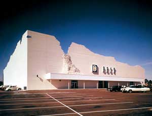 • 05 Beispiel: Die Site BEST-Filiale in Houston greift auf das Bild der Ruine zurück, zumindest im Äußeren. Im Sinne einer Vergegenwärtigung von Vergangenem, in Erinnerung an Formen aus der Vergangenheit.