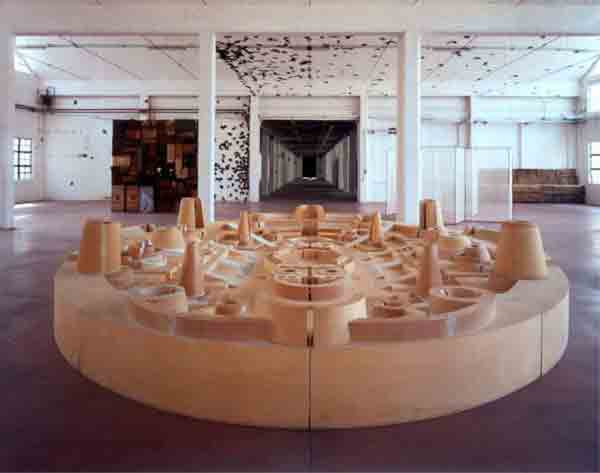 • 39/40 Anne und Patrick Poirier bauen Konstruktionen als Modelle. Abformungen, Sammlung von Steinen, Fotos führen zu einer Rekonstruktion des Bildes, das sich das Ehepaar Poirier von Ostia gemacht hat. Fiktionen und Überlieferungen sowie Reflexionen vereinigen sich.